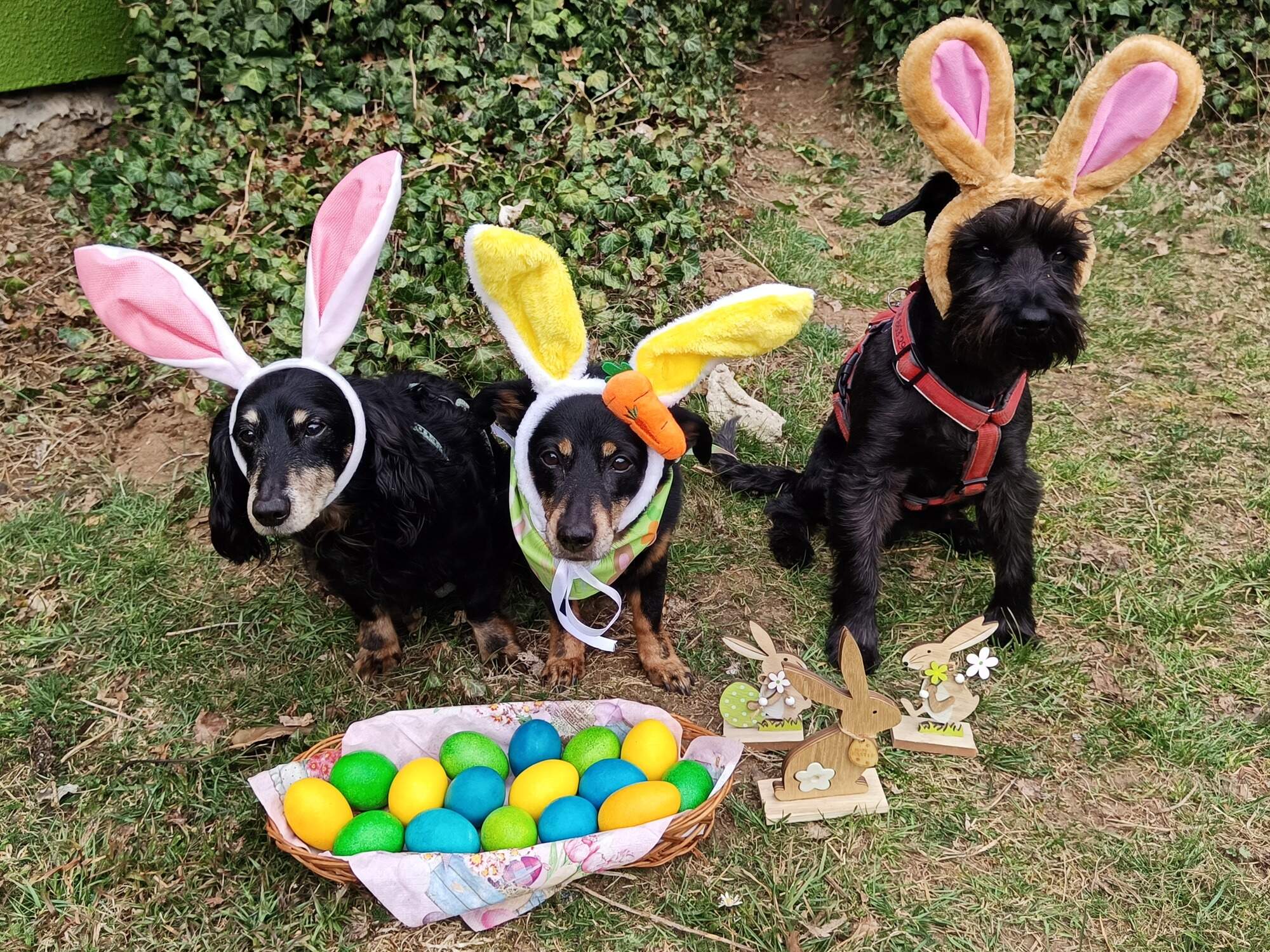 Letošní Velikonoce pro mě byly dost jiné, protože jsem je místo toho, abych byla doma s rodinou jako (skoro) každý rok, trávila s přáteli v Japonsku. A vůbec jsem je neslavila, jelikož v době, kdy se v Česku chodilo na šupačku, jsem byla v Disneylandu 😉. A i když Japonci berou Velikonoce jako příležitost k různé (různě praštěné) výzdobě, na pomlázku se tam rozhodně nehrálo. Nicméně – já s tím počítala. Vzhledem k tomu, že mám tyto svátky svým způsobem ráda, slavila jsem je společně se svou smečkou ještě před odletem do země vycházejícího slunce. Vyrobila jsem pár barevných lineckých, upekla beránka, nabarvila pár vajíček (fakt to bylo brzy, tak došlo jen na dvě barvy 🙂) a samozřejmě také donutila pejsky pózovat jako ty nejroztomilejší velikonoční zajíčky… 🐰